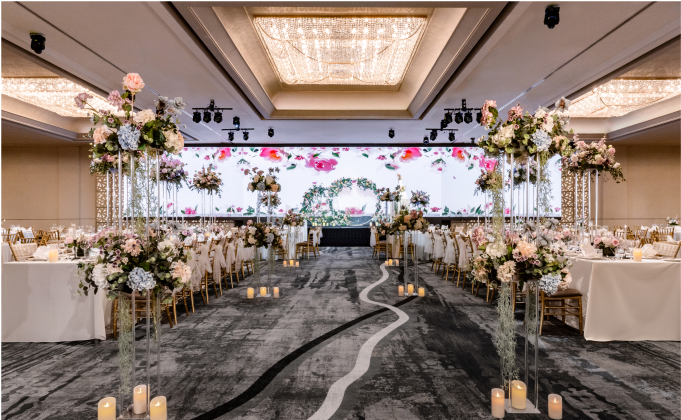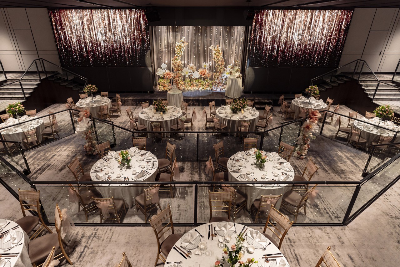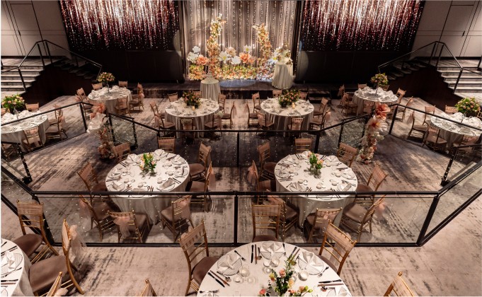 The lofty elegance of Imperial Ballroom is complemented by the uniquely designed four-tiered amphitheatre-style ballroom with impressive LED walls and stunning views of Orchard Road from 35 levels high.